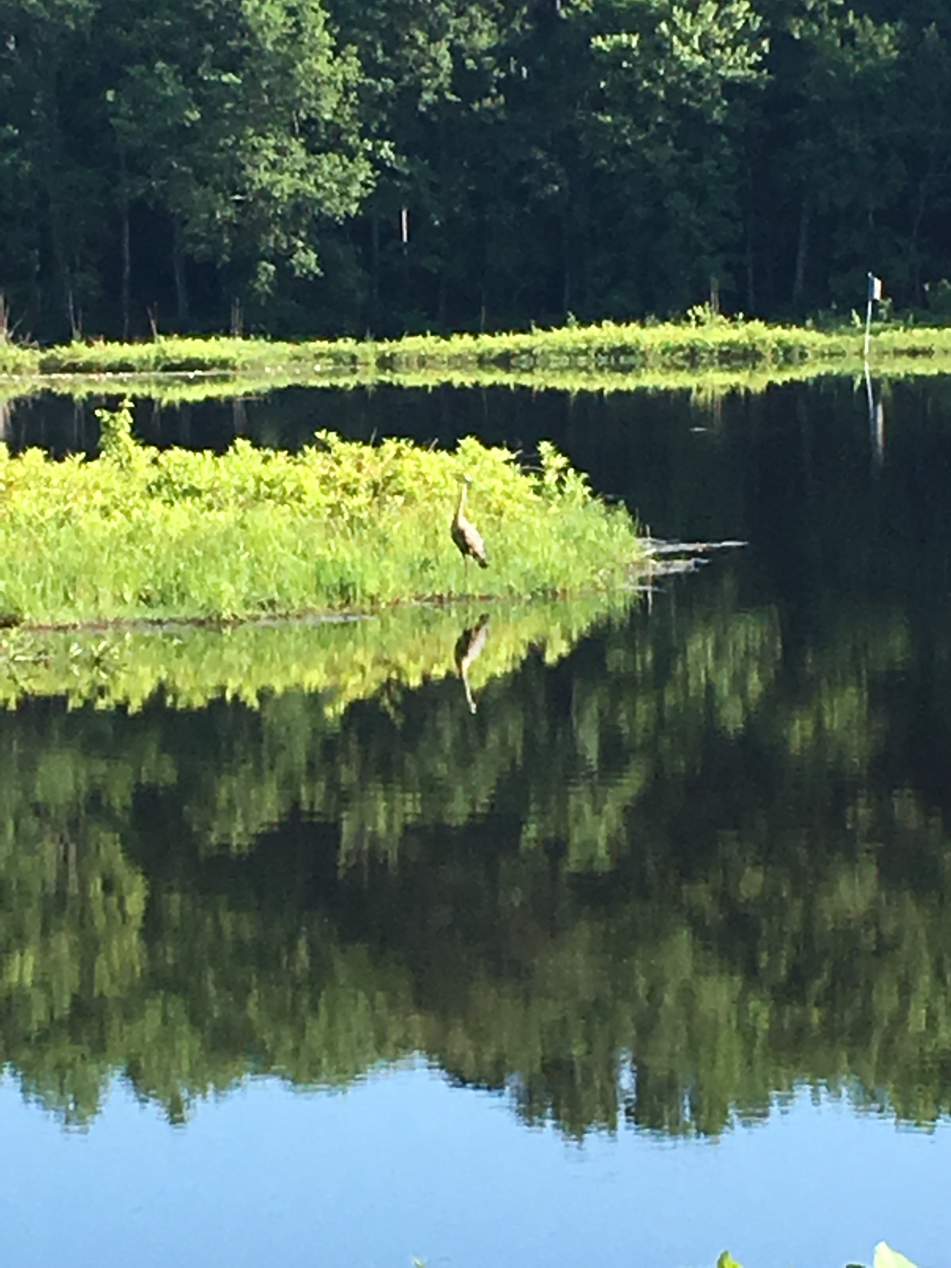 Today was about listening to the pace of my breathing in rhythm to the bird song. Today was about standing on the shore’s edge and thrilling when a great blue heron loosed itself from gravity and skimmed the water’s horizon before alighting in the tall grass growing from the water.